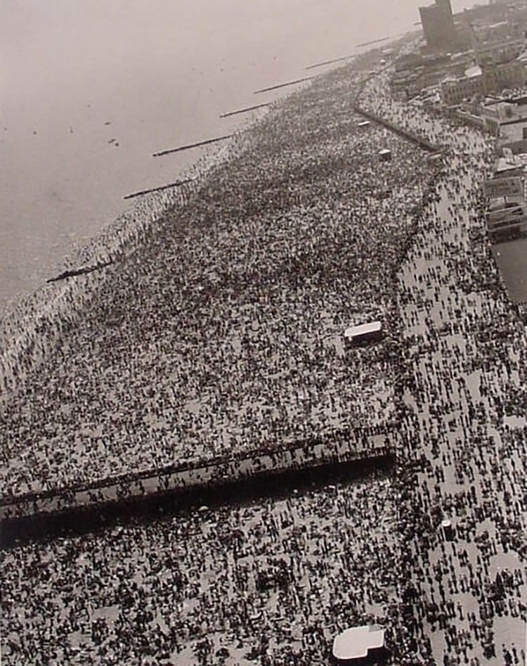 The exhibition of photography was inspired by Windsor’s beach and Weston’s memories of her beach experience at Windsor. Clifford Ross’s crashing waves, Morris Engel’s couple embracing on the sand and Paul Pfeiffer’s empty stretch of shoreline have powerful resonance. Other pieces in the collection showed aspects of beach life that come from outside our immediate frame of reference. Martin Parr’s gritty portrayal of British holiday resorts depicts a paradise lost, while Robert Capa’s extraordinary images of the Normandy landings document events which have made an indelible mark on history, but are, especially for the younger generation, about as far from our own associations with the seaside as it is possible to get. By deconstructing the beach as idyll, its universality is revealed.