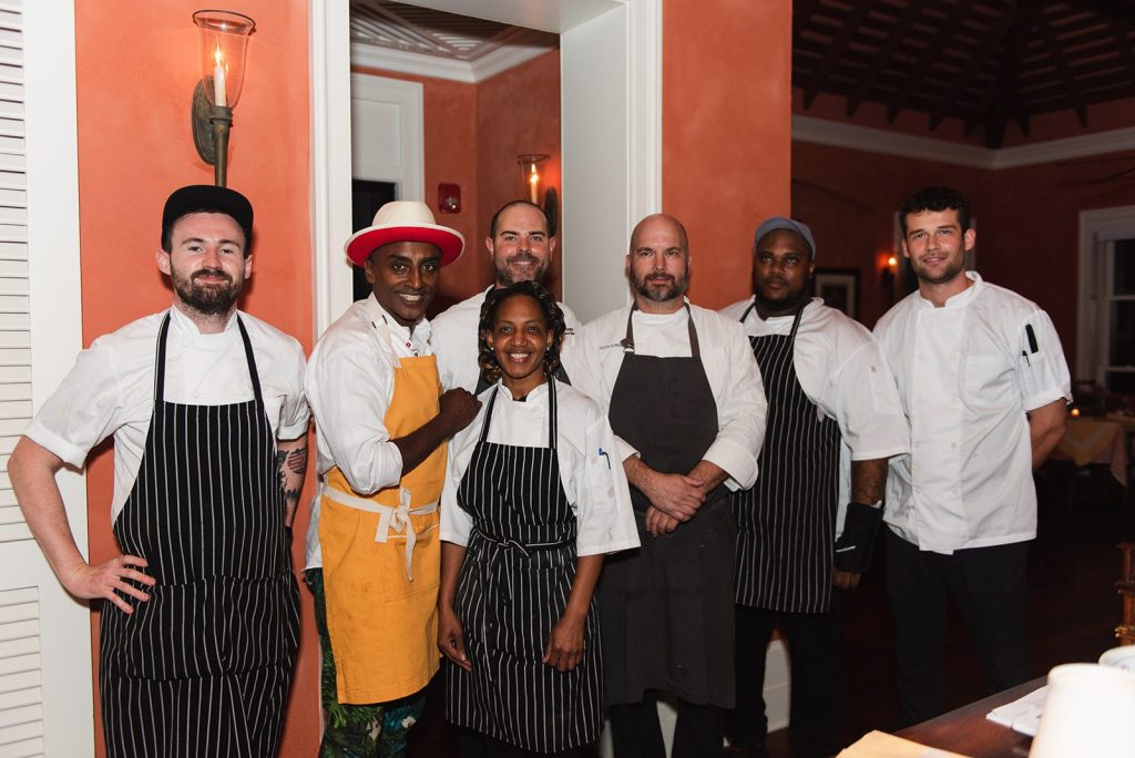 The celebrated fête kicked off at Windsor’s Beach Club Salon and Bar with passed canapés including Deviled Eggs, a Seafood Fritter with Old Bay Aioli, Chilled Tomato Soup and Red Rooster’s signature cocktail, “Yes, Chef.” Following cocktail hour, 120 Members were seated in Windsor’s oceanfront dining room and veranda.