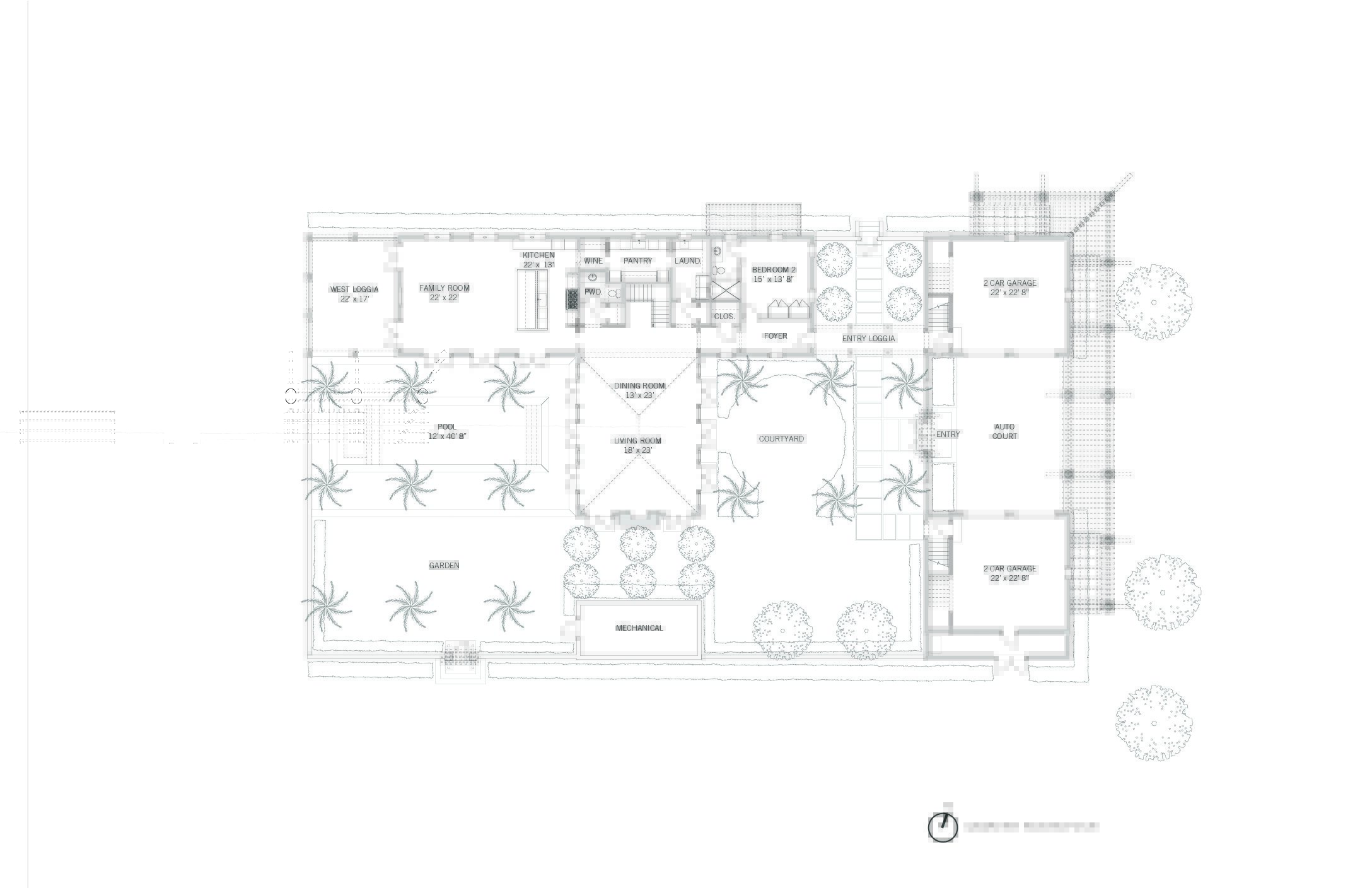 Bordered by a conservation area to the north, a fairway to the west, and green space to the south, this five-bedroom residence designed by Hoos Davis Architecture has an estate-like character. Occupying a prominent site near the entrance to the South Village, it is distinguished by both location and design. Light-filled interiors capture long southwestern views across the golf course, while expansive living and dining spaces open to the outdoors through multiple sets of French doors. A garden courtyard and pool terrace overlook the golf course, supporting relaxed living and entertaining. Two guest cottages provide flexibility and privacy, complemented by surrounding green space and conservation land to the north.