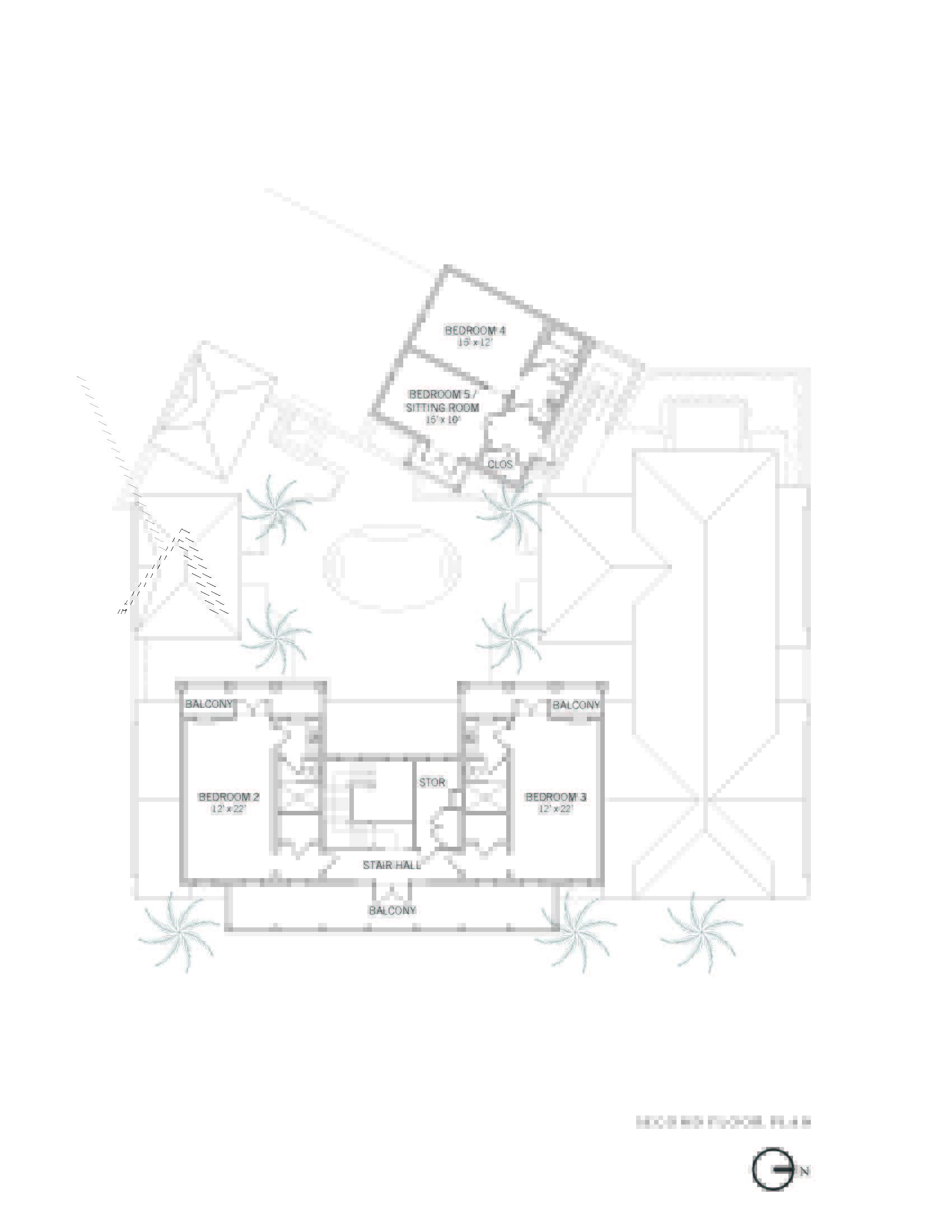The home’s spacious bedroom suites combine timeless materials with graceful proportions to create a refined sense of comfort and privacy. The ground-floor primary suite overlooks the polo field through tall windows and opens to the courtyard through French doors. Two custom windowed walk-in closets and a limestone-clad bath with double vanity, jetted tub, and walk-in shower complete this tranquil retreat. Two generously sized second-floor guest suites each enjoy a private balcony overlooking the courtyard and windows overlooking the polo field. The carriage house, accessed directly from the courtyard, offers a bedroom with an en-suite bath and a flexible sitting room or second bedroom with its own private balcony.