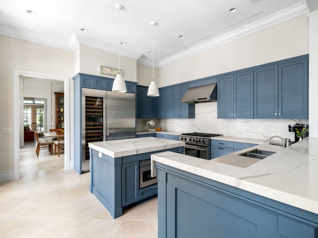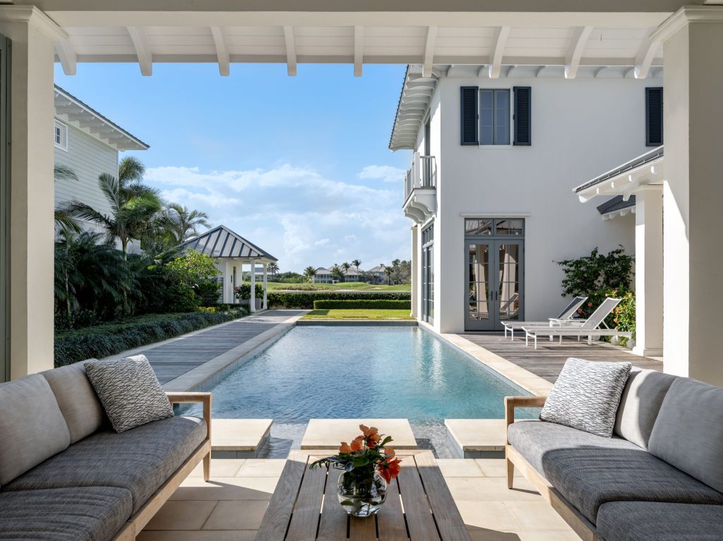 With sweeping western views over Windsor’s iconic golf course and interiors bathed in natural light, this home embodies understated luxury. Throughout the first floor, French doors with transoms above open to covered loggias and a serene courtyard with a 53-foot lap pool, seamlessly blending indoor and outdoor living. A trellised sitting area in the rear garden offers a tranquil retreat amid lush tropical landscaping. Inside, elegantly crafted millwork and custom details add timeless character to every space.
